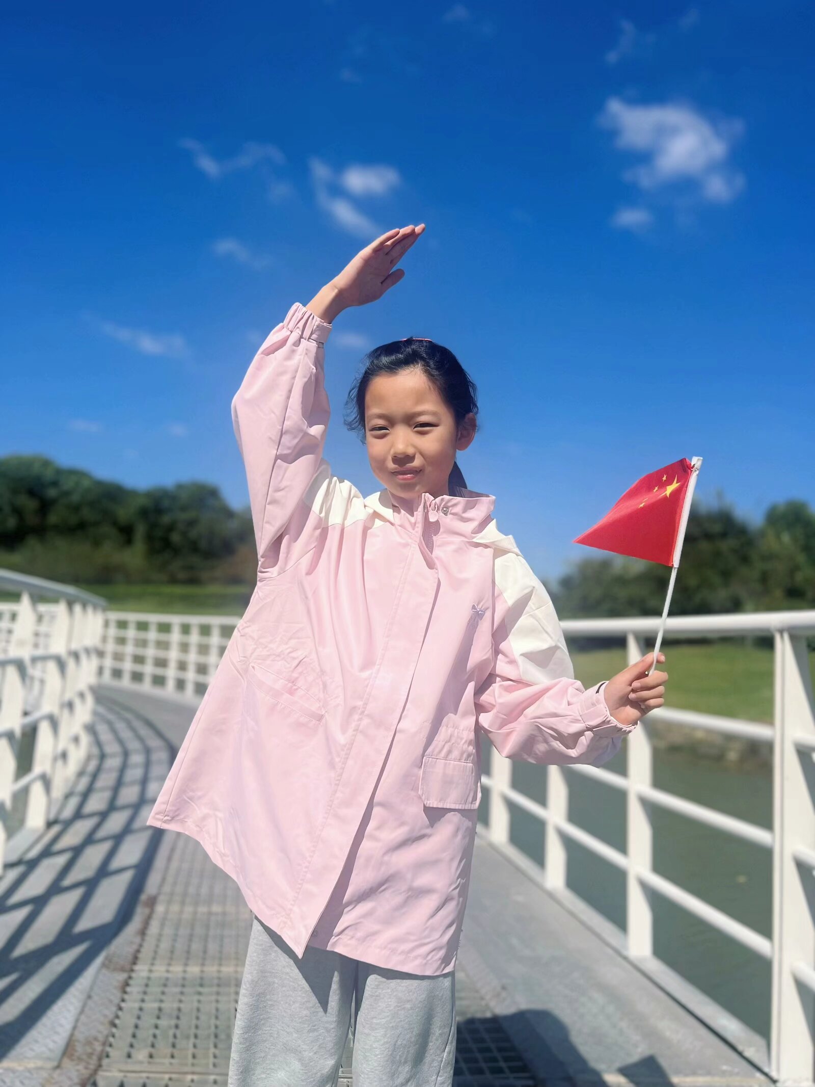 有一种骄傲叫“五星红旗”,有一种画面叫“我和国旗合张影”。国庆节期间,四(2)中队的队员们开展了“我和国旗合个影 ”的活动。