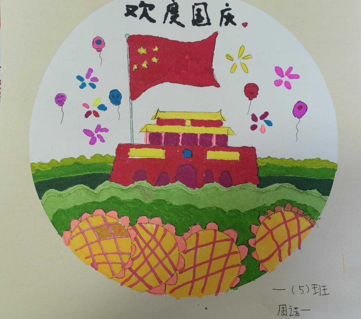 我们还亲手做了一面小红旗,画了有一幅幅美丽的画,表达我们对祖国母亲的热爱之情。