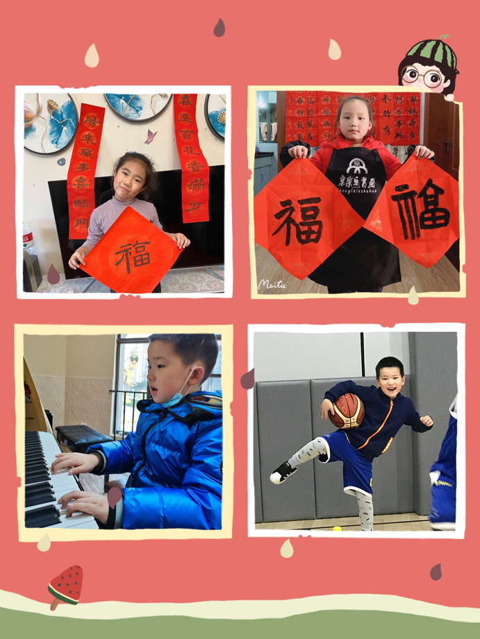 我们还会做些体育锻炼,强健体魄;快过年啦,我还可以写春联写福字,亲戚朋友们都夸我是个棒棒的孩子。