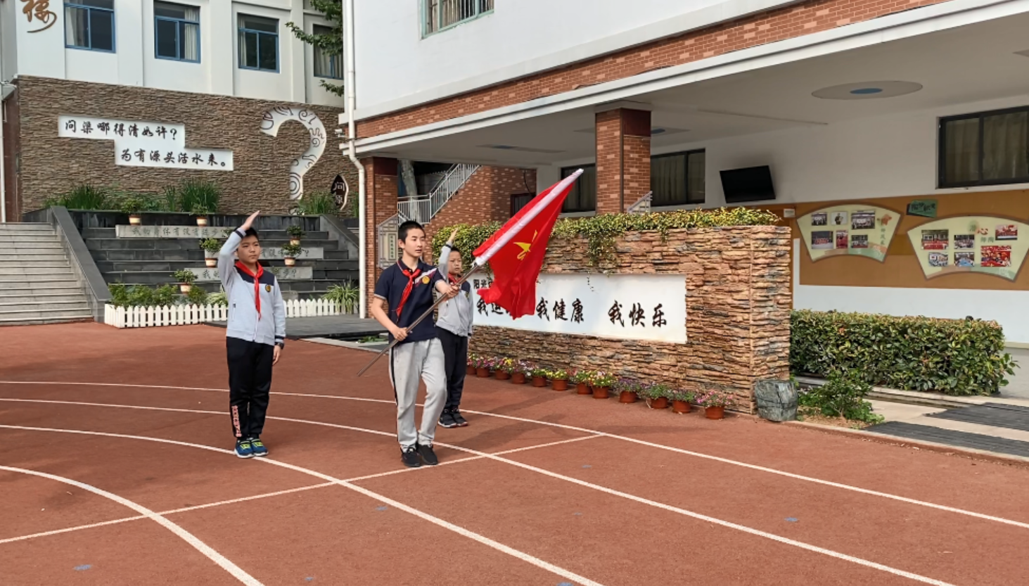 入队仪式由五(2)中队陈思彤同学主持,仪式在庄严的出旗曲中拉开序幕