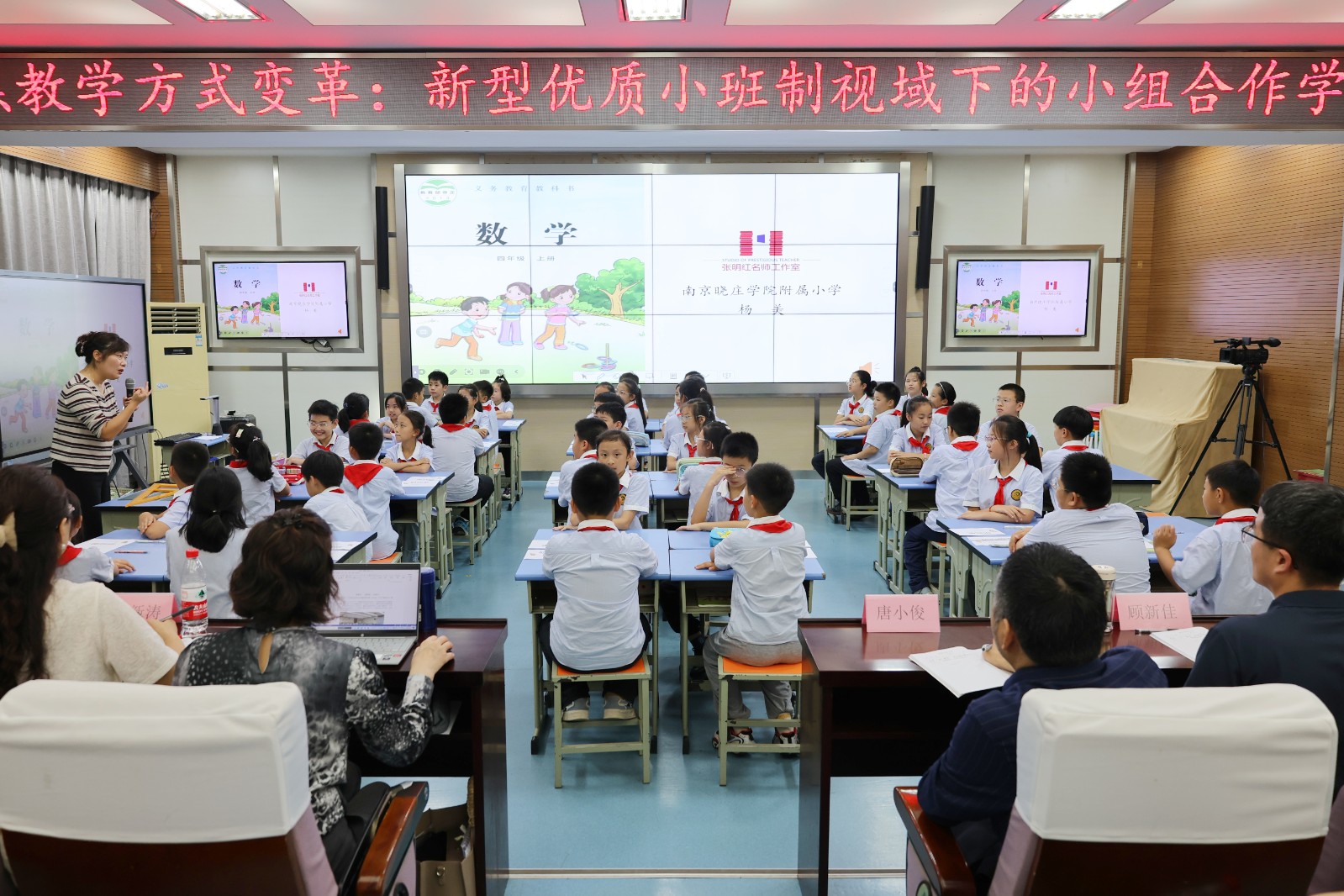 时维九月,序在金秋。秋之美在于积蓄与勃发,教之美,在于钻研与提升。9月30日下午,我们怀揣着对数学教学的殷殷期待,以《聚焦教学方式变革:新型优质小班制视域下的小组合作学习》为主题的教研展示活动在南京晓庄学院附属小学举办。栖霞区教师发展中心张明红副校长,陈新涛老师、周晓梅老师,南京晓庄学院附属小学唐小俊校长,王剑副校长以及栖霞区小学数学学科教学带头人共同参与了本次教研活动。随着教育改革的深入推进,“小班制、小组化、合作学习”已成为课堂教学的重要方向。本次活动特别邀请三位市学科教学带头人给大家带来了三节精彩的展示课,为栖霞区小学数学骨干教师引领示范。