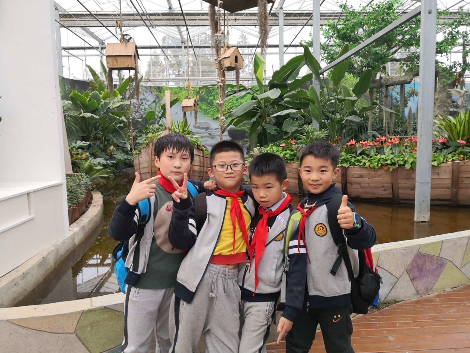 今天天气真好,三四班的男生女生们一起去秋游啦!