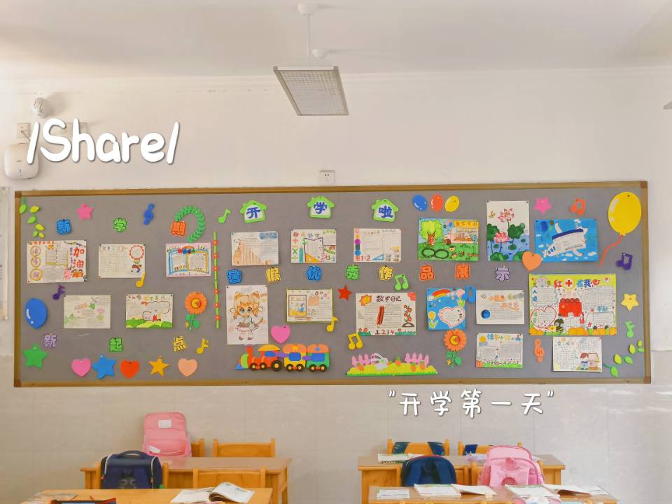 我们来一起来回忆一下九月份发生了哪些值得一提的事吧!开学第一天,将孩子们假期做的手抄报展示在黑板报上。